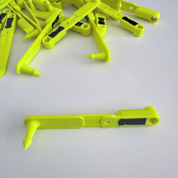 Klemmerne er designet som forseglingstags, hvilket betyder, at de ikke kan fjernes, når de er lukket. Det kræver et værktøj at klippe dem, når de er fastgjort.